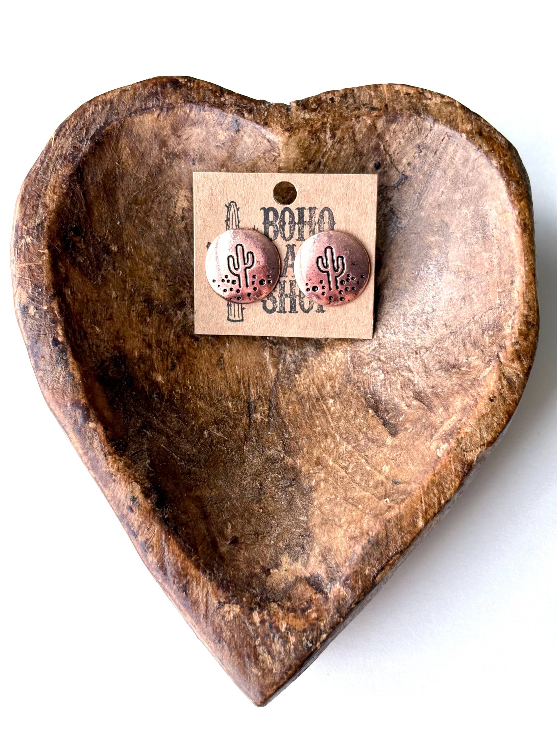 Earring Size: 0.8" Post Back Brushed Silver, Engraved Cactus